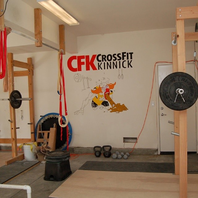Taking it way back for #flashbackfriday to my first muscle up in my garage where CrossFit Kinnick began. This was about 6 months into CrossFit for me. We’ve come a long way! Check out the video and the pic of our set up! My little brother Jonathan built everything by hand: pull ups bars, squat racks, lifting platform, GHD, rings, parallettes…good times!